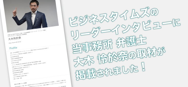 代表取締役大木怜於奈のインタビュー記事が、ビジネス情報サイト「ビジネスタイムズ」のリーダーインタビューに掲載されました。